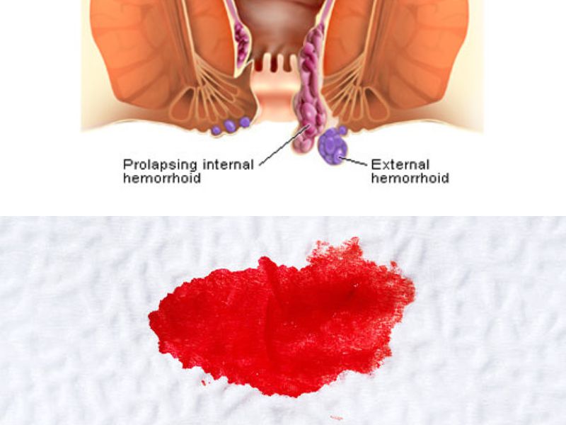 - Zbog izraženih arteriovenskih shuntova, krv kod unutarnjih hemoroida je obično svijetlocrvene boje, a vrlo često brizga po WC-školjci.